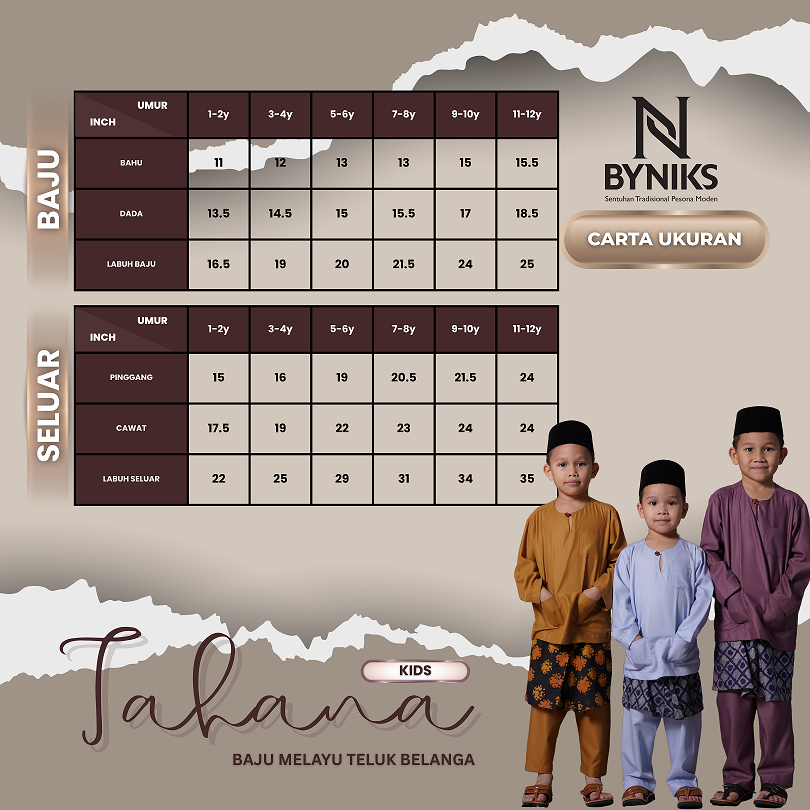 - Size dari 2-12 Tahun