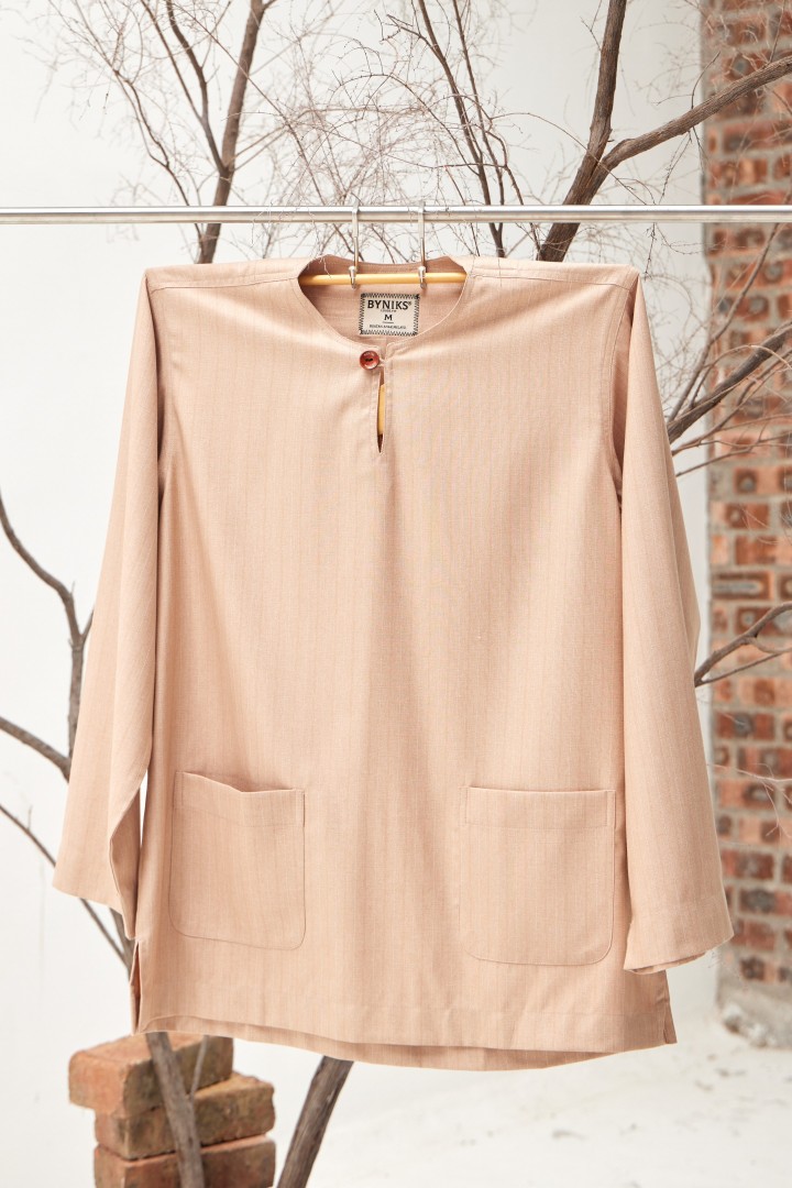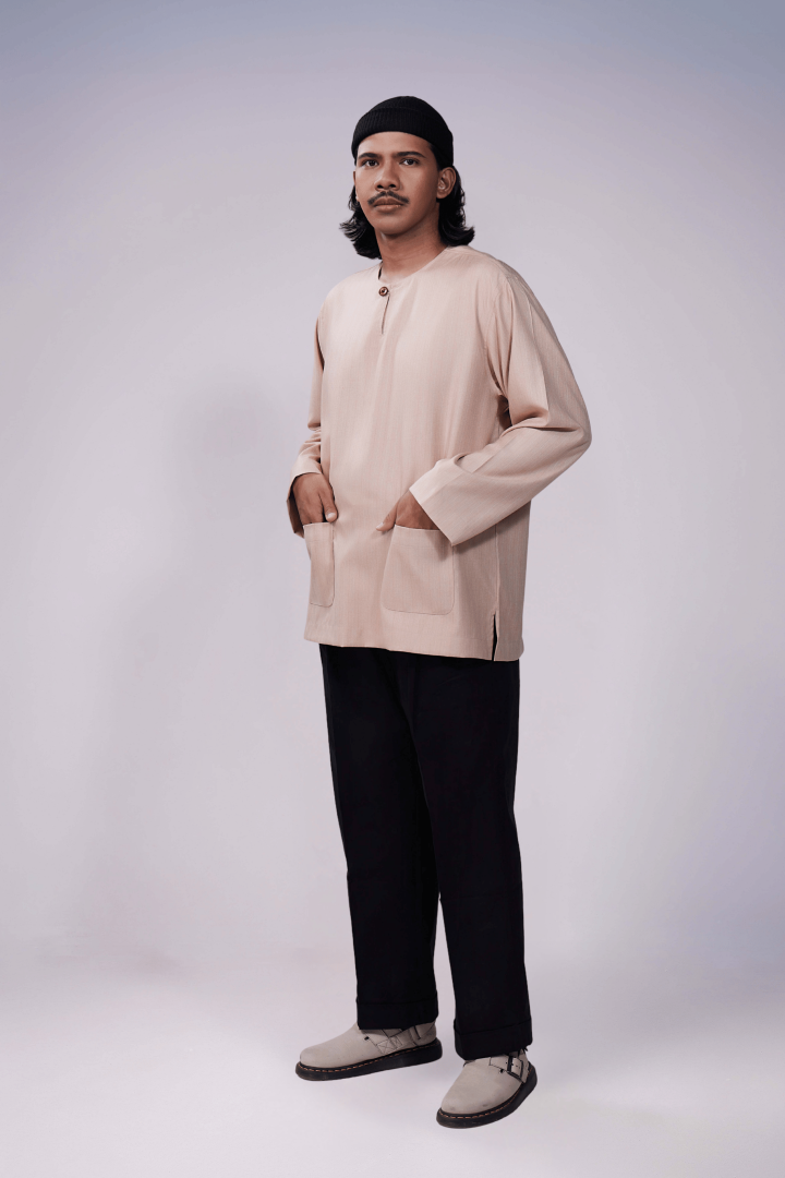 KURTA COTTON STRIPE KLASIK MODEN MOCHA BEIGE - 2026