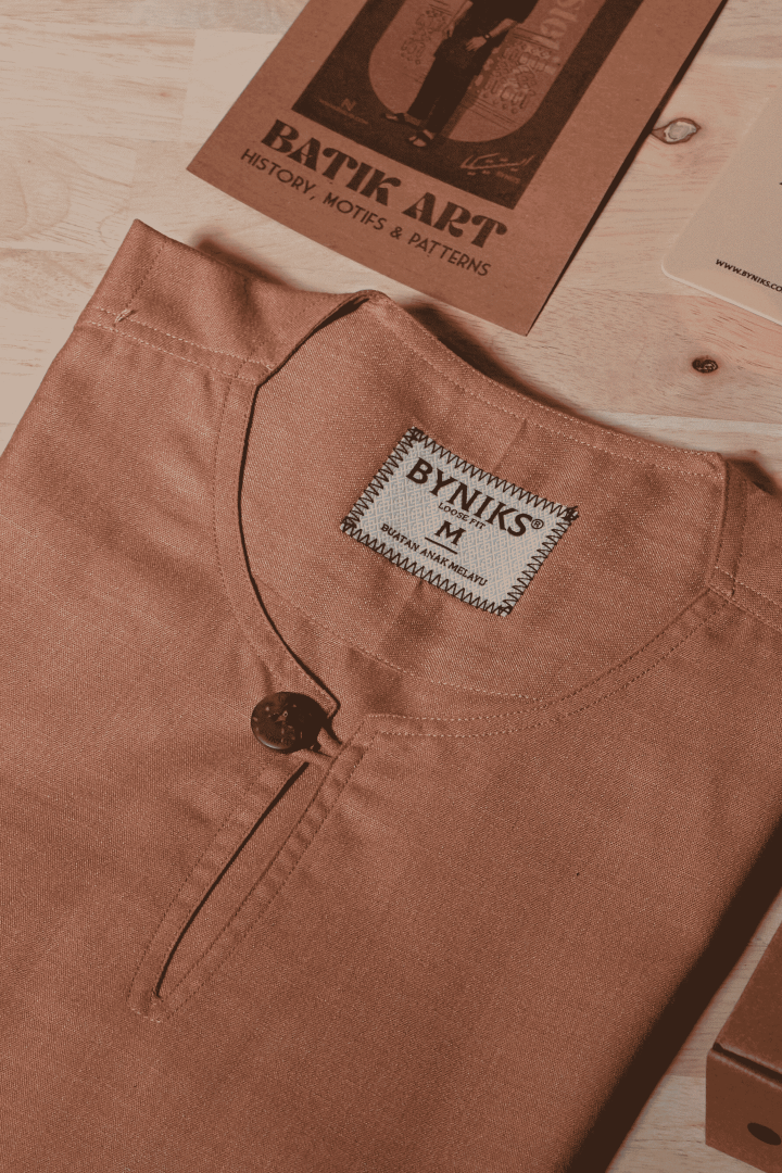 • Batik turut dijahit kemas di belahan tepi bawah baju – perincian halus yang menambah karakter.