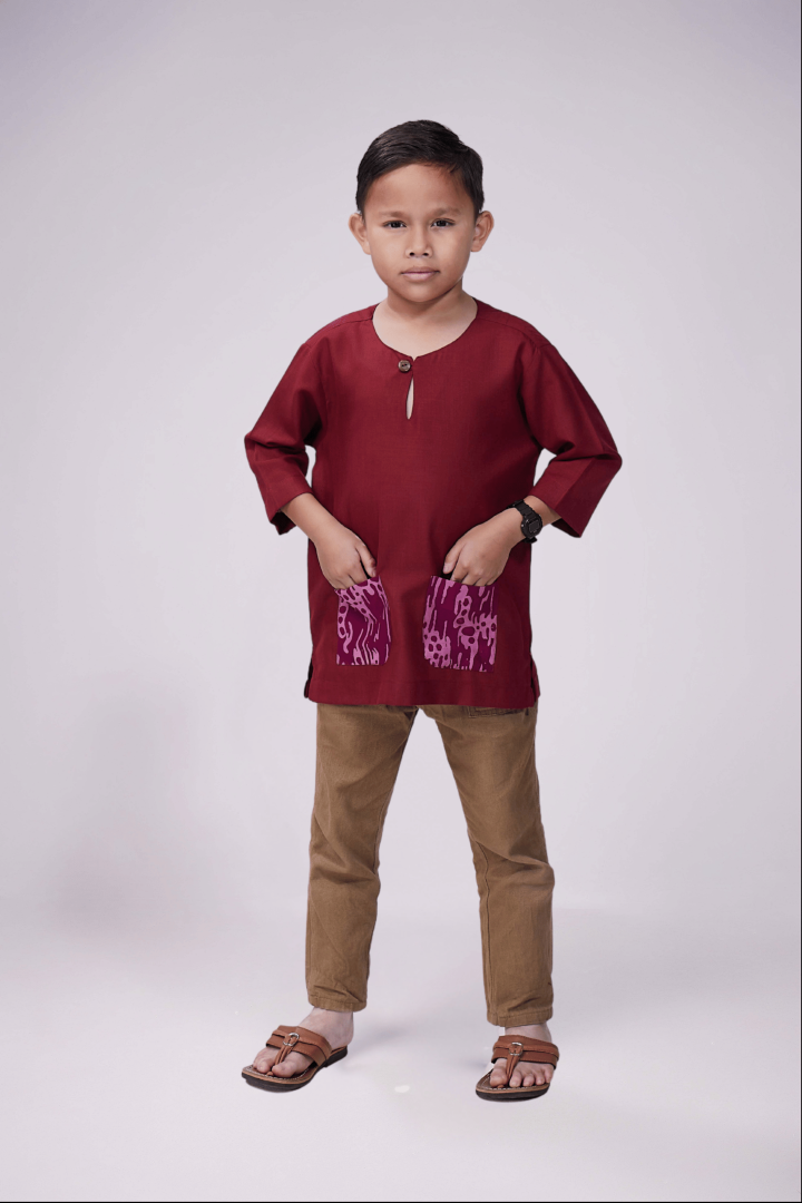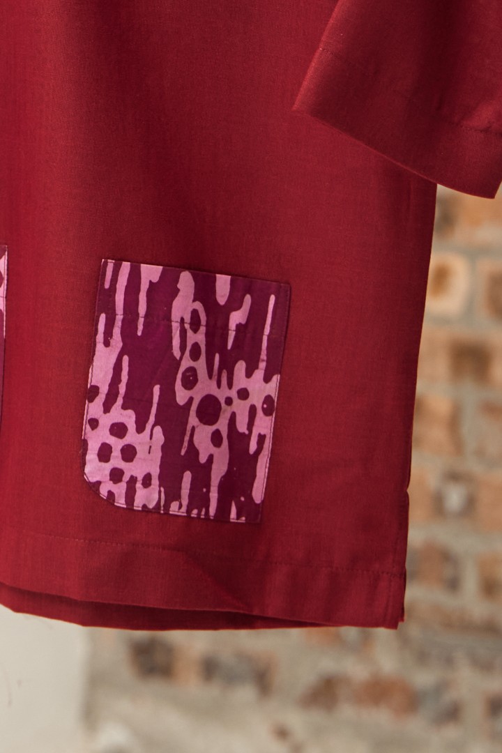 • Batik turut dijahit kemas di belahan tepi bawah baju – perincian halus yang menambah karakter.