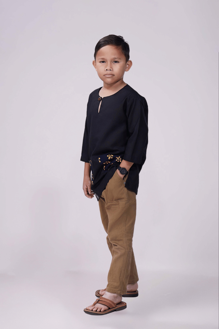 • Batik turut dijahit kemas di belahan tepi bawah baju – perincian halus yang menambah karakter.