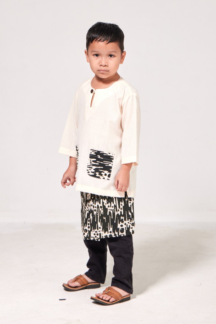 • Batik turut dijahit kemas di belahan tepi bawah baju – perincian halus yang menambah karakter.