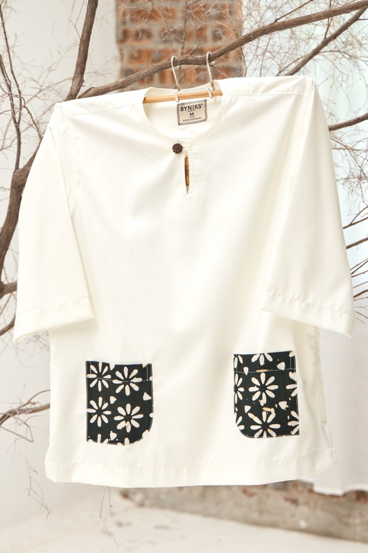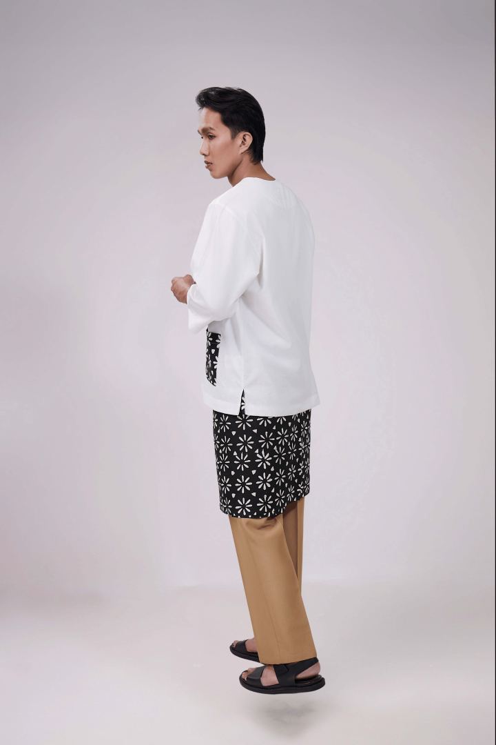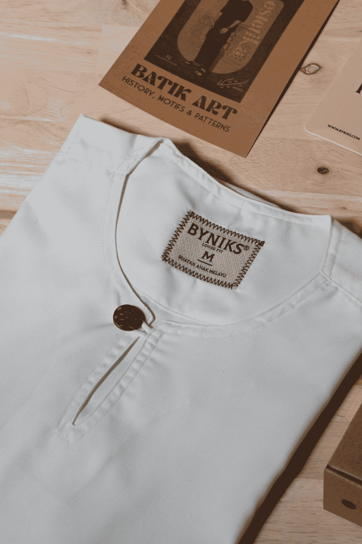 • Batik turut dijahit kemas di belahan tepi bawah baju – perincian halus yang menambah karakter.